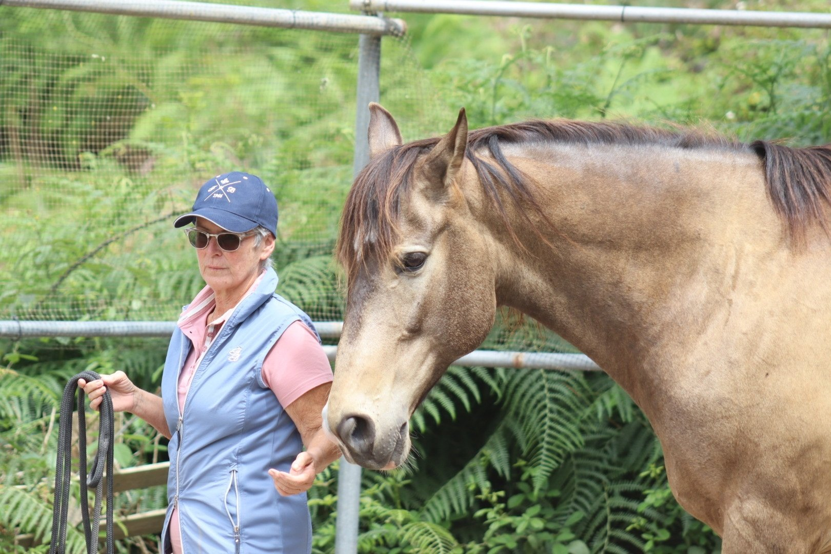 Die Besitzerin konnte sich aus gesundheitlichen Gründen nicht mehr kümmern. Wir haben Romy mit Paten und Spenden zu uns geholt und wieder zum Reitpferd gemacht. Sie ist super umgänglich und sehr menschenbezogen.